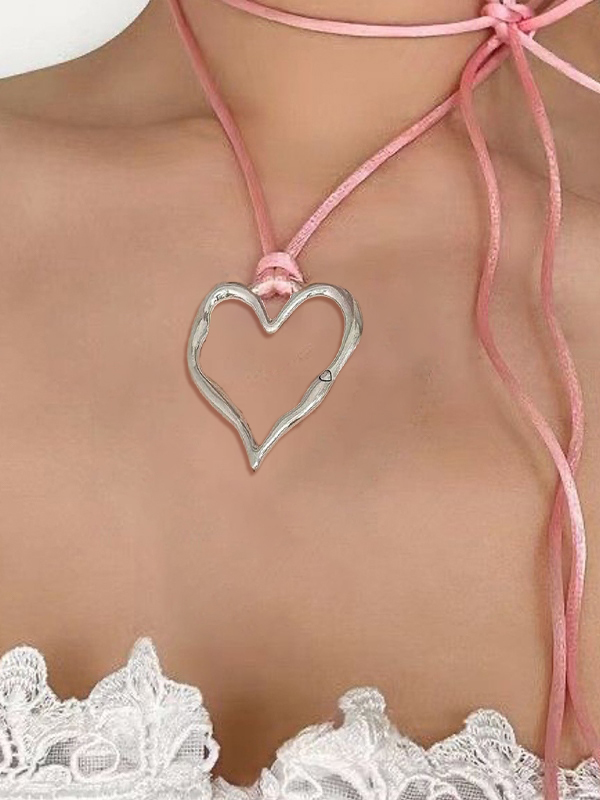 Collar de cuerda con colgante de corazón de gran tamaño