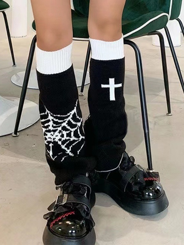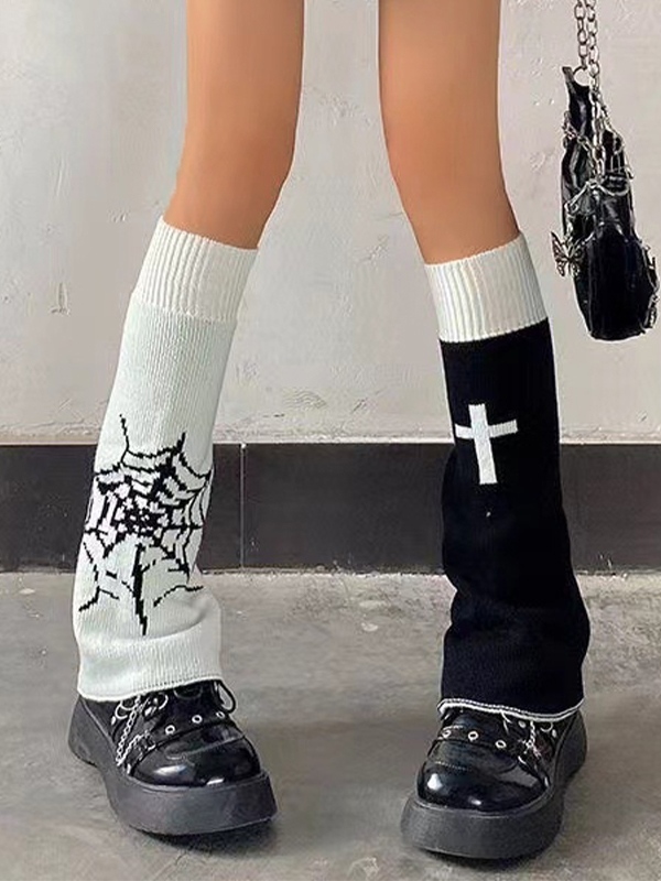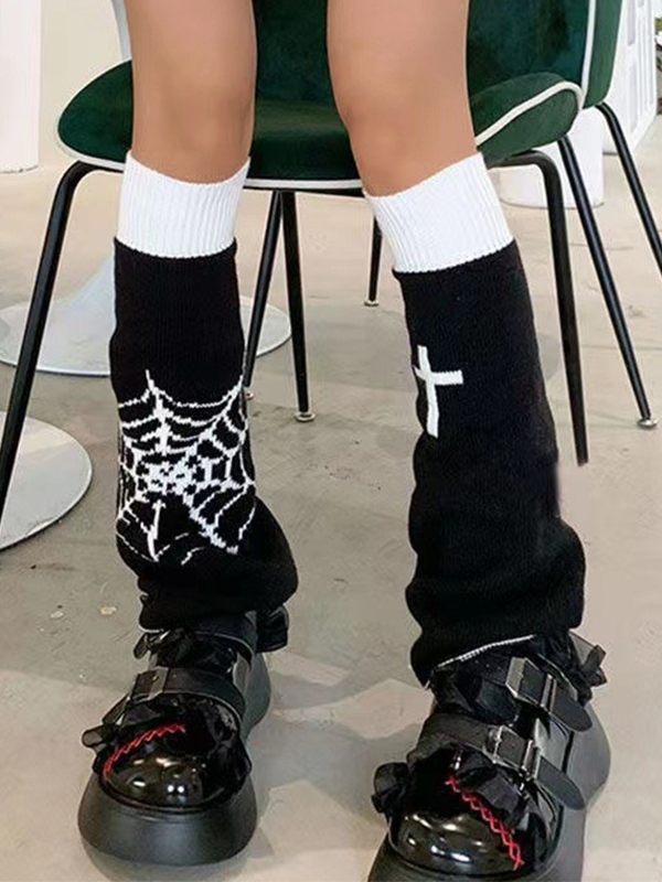Calentador de piernas reversible con estampado de telaraña cruzada
