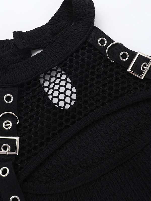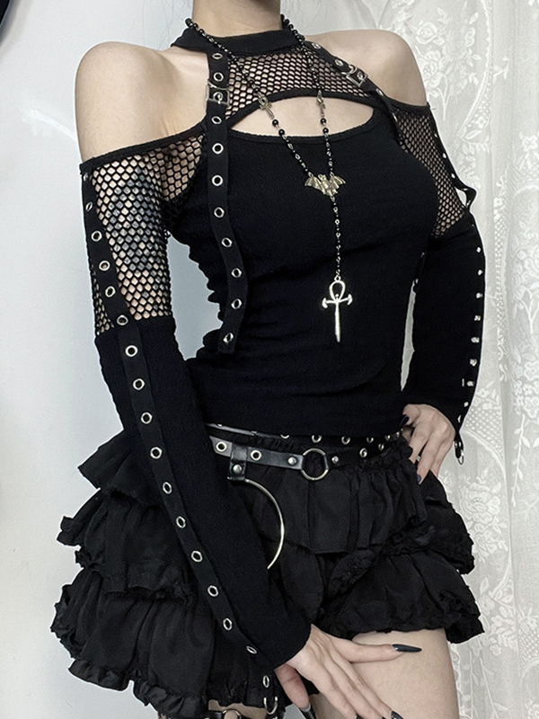 Camiseta de manga larga con hombros descubiertos y rejilla