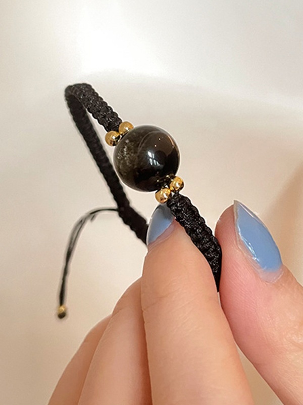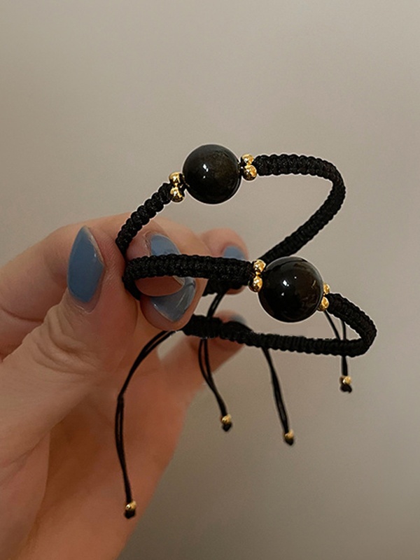 Pulsera trenzada con empalme de obsidiana estilo pareja