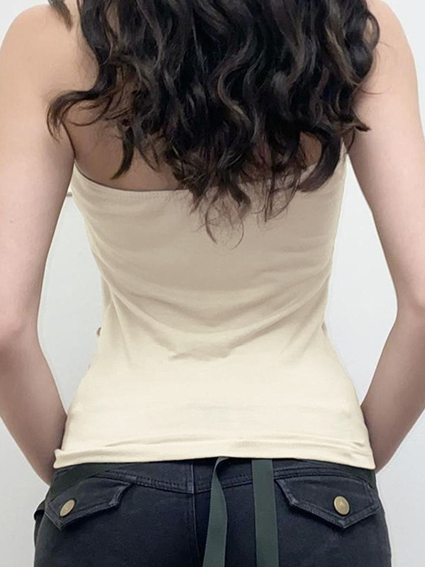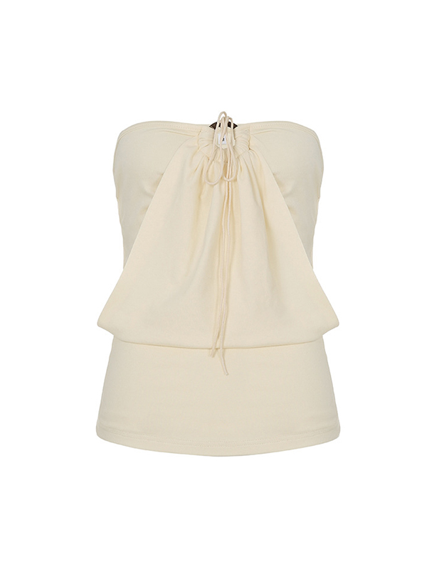 Top bandeau plisado con diseño circular y cordones