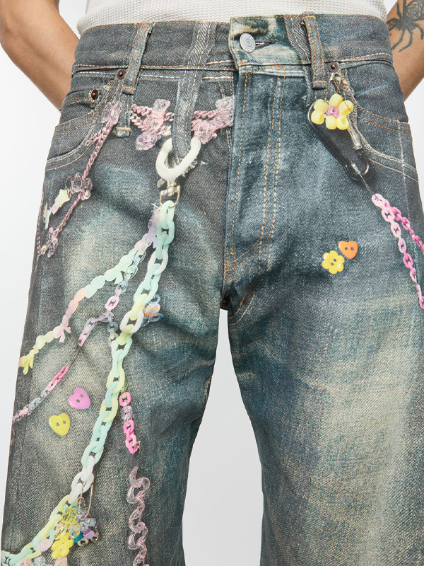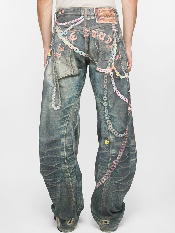 Vaqueros holgados con estampado de cadena para hombre