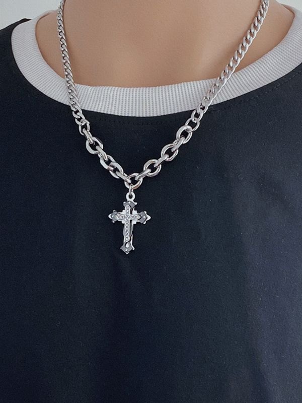 Collar de cadena con colgante de cruz de diamantes de imitación para hombre